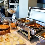En frukostbuffé serveras på Alykes Hotell i Marmari varje morgon. Hotellet har också en lounge bar.